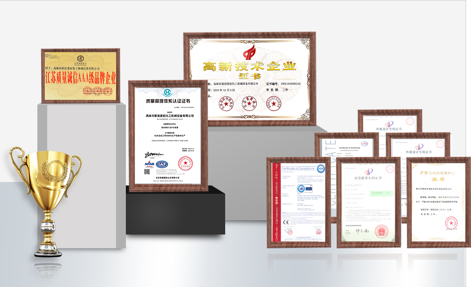 榮獲30余項(xiàng)實(shí)用新型和外觀專利證書,乳化機(jī)/灌裝機(jī)等多款產(chǎn)品被認(rèn)定為高新技術(shù)產(chǎn)品